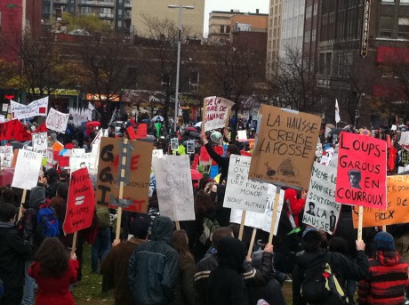 Environ 500 manifestants se sont rassemblés au parc Émilie-Gamelin (Montréal), donnant le ton au mouvement étudiant.