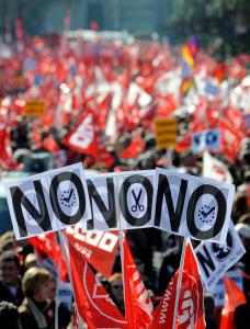 Rassemblés à l’appel de l’UGT et de Comisiones Obreras (CCOO), les deux grands syndicats espagnols, les centaines de milliers de manifestants ont déferlé en masse dans les rues de 57 villes du pays. Le nombre de manifestants a atteint 500 000 personnes dans la capitale Madrilène alors qu’ils étaient 400 000 à Barcelone et 150 000 à Valence.