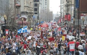Jeudi 22 mars, 300.000 étudiants ont manifesté dans les rues de Montréal contre la hausse des droits de scolarité au Québec.