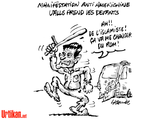 Le premier flic de France, Manuel Valls-Sarko, vient de déclarer la guerre aux « Salafistes », ces « Fondamentalistes musulmans fanatiques ». Pour un rassemblement devant l’Ambassade des USA à Paris qui comptait entre 200 et 300 personnes le déploiement policier a permis 150 arrestations!