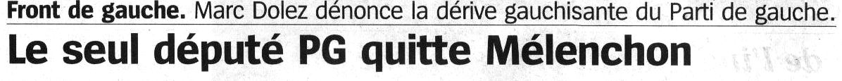 Le départ de Dolez s’inscrit donc dans une démarche que certains qualifieraient de « droitière » pour son indéniable tropisme de polarisation par un PS tombé dans les eaux glacées capitalistes du rapport Gallois mais avec l’inconvénient qu’un tel étiquetage vaudrait labellisation d’un cours de gauche pour identifier l’orientation suivie par le PG. Or, sans aller plus loin dans l’analyse de la question, on relèvera que le démissionnaire passe à côté de ce qui est, pour nous, la caractéristique essentielle de ce parti : l’articulation, d’une part, d’un verbe tout en radicalité assumant en effet le clash avec « Hollandréou », et, d’autre part, des déclarations (des pratiques aussi) ouvrant vers le Parti Socialiste.