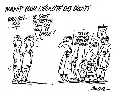 Le 13 janvier, les homophobes seront à nouveau dans la rue contre l’ouverture du mariage et de l’adoption aux couples homosexuels : Boutin, Copé, l’Action française, la Trêve de Dieu, Laissez-les vivre… Droite, extrême droite, mouvements religieux, tous accusent le projet de loi de remettre « en cause [les] fondements de la famille, à travers le mariage et l’adoption par les couples homosexuels ».