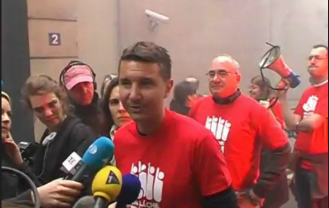 Besancenot et des militants du NPA envahissent la cour de la Banque de France: