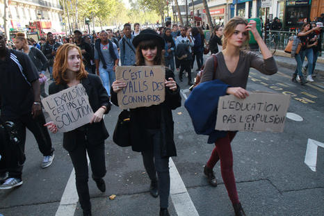 Hier, des milliers de lycéenNEs sont descendus dans la rue à Paris et dans d’autres villes pour exprimer leur solidarité avec deux jeunes lycéens expulsés brutalement par la police de Valls et exiger leur retour et leur libération.