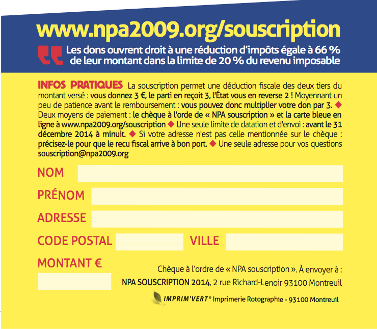 L’argent est un moyen de censure qui garantit le monopole de la représentation politique aux partis institutionnels complètement discrédités. Nous ne pouvons nous résigner à ce monopole scandaleux. C’est pourquoi les militantEs du NPA se tournent vers vous et vous demandent votre soutien.