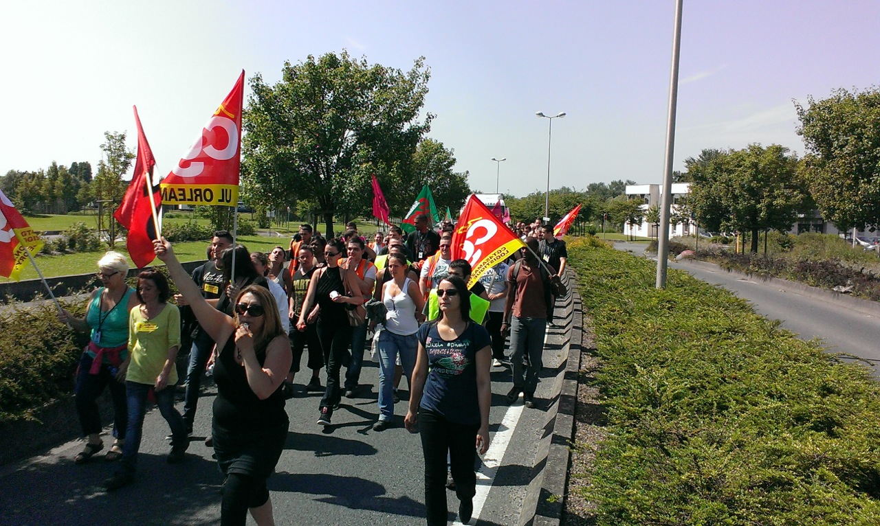 La zone industrielle de Saran-Ormes n’a pour une fois pas seulement résonné du bruit des milliers poids-lourds qui y transitent tous les jours. Mercredi 11 juin on a pu y entendre les slogans scandés par environ 150 salariéEs d’Amazon Saran, en grève et en manifestation contre le refus de leurs patrons d’entamer de véritables négociations en ce qui concerne les salaires et les conditions de travail. Les salariéEs d’Amazon, avec les syndicats CGT, FO et Sud, demandent des augmentations générales des salaires, un véritable 13ème mois (ce dernier est amputé pour cette année), un régime de pause correspondant au choix des salariéEs. Un quart environ des salariéEs (250 sur 950) de la plate-forme de Saran étaient en grève (surtout de l’équipe du matin). Une grève active donc, avec de nombreux jeunes, un piquet dynamique sous un soleil radieux et une manif bruyante et combative. A noter la présence de délégués d’Amazon Châlons-sur-Saône et Amazon Allemagne, ainsi que le renfort de cheminotEs en grève reconductible.
