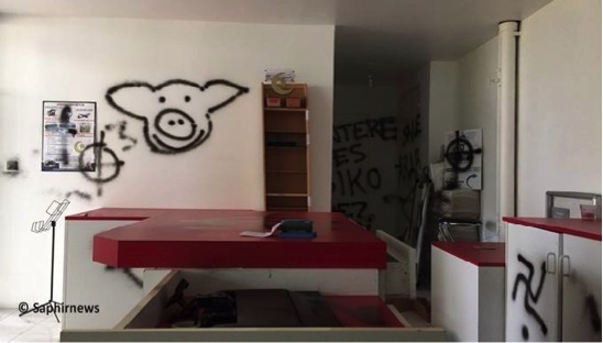 Le local de Muslim Assistance (une entreprise de pompes funèbres située 3, rue Bossuet) a été victime d’un saccage ce week-end dernier: des papiers déchirés, des ordinateurs vandalisés et des tags absolument immondes inscrits sur les murs ( croix gammée, croix celtique nazie, insultes racistes). Ce que confirment les enquêteurs de la police nationale, alertés samedi. « On s’est rendus sur place pour constater que des messages à caractère islamophobe avaient été inscrits à l’intérieur du local. » Une enquête a été ouverte. Depuis, la police effectue des passages plus fréquents aux abords des lieux de culte musulmans.