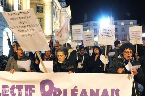 Parties de la place De Gaulle, plus de 200 personnes à l’appel du Collectif Orléanais pour le Droit des Femmes défilent dans les rues d’Orléans pour protester contre les violences faites aux femmes dans la rue, à l’atelier ou au bureau mais aussi au foyer !