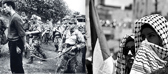 Cette situation nous ramène forcément à ce qui existe aujourd’hui en Palestine. La Palestine est occupée depuis un peu plus de 70 ans, à l’origine, par des colons d’origine européenne victimes des persécutions nazies, délaissés par des gouvernements issus des libérations. Mais cette terre généreusement « donnée » par les Nations Unies n’était pas vide! L’implantation coloniale s’est faite, comme pour l’Algérie avec des destructions de village, des spoliations de terres et des populations chassées et massacrées.
