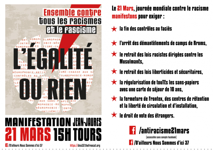 « Le 21 mars prochain nous appelons à manifester pour la journée mondiale contre le racisme.