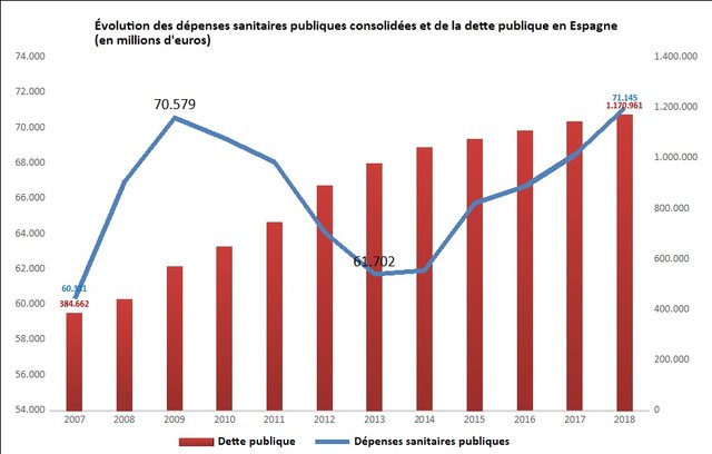 Figure 1. Sources : Estadística de Gasto Sanitario Público 2018. Ministerio de Sanidad, Consumo y Bienestar Social 2020 et Banco de España