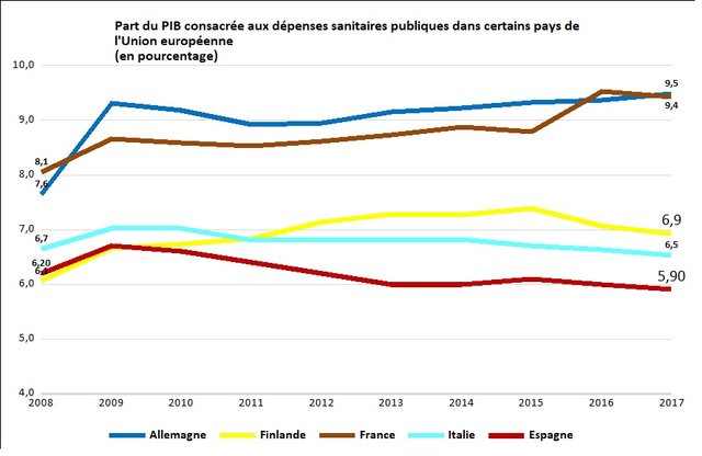• Une diminution des dépenses de santé publique passant de 6.2% à 5,9% du PIB entre 2012-2018, taux bien inférieur à la moyenne des pays européens voisins (Figure 2).