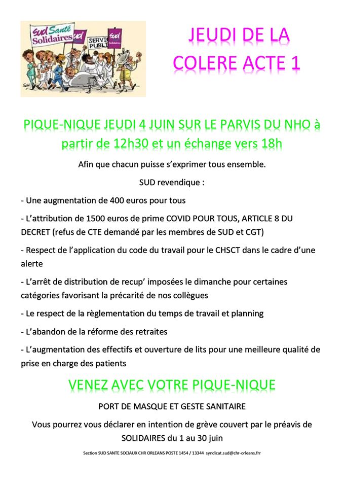 Pique Nique de la Colère 4 juin à partir de 12h30 au CHRO !