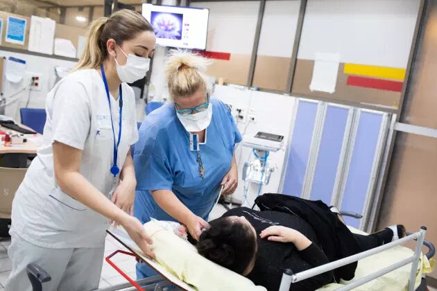 Le retour progressif à la normale, après la vague épidémique, n’est pas facile. Derrière Sheila Gasmi, un homme de 91 ans arrive sur un brancard dans la salle de déchocage, dévolue aux cas graves, une plaie profonde dans la jambe droite. Il a trébuché sur son déambulateur, fracture ouverte du tibia. Mais le retour à la normale, ce n’est pas tant ce qui se passe en salle de déchocage que tout autour.
