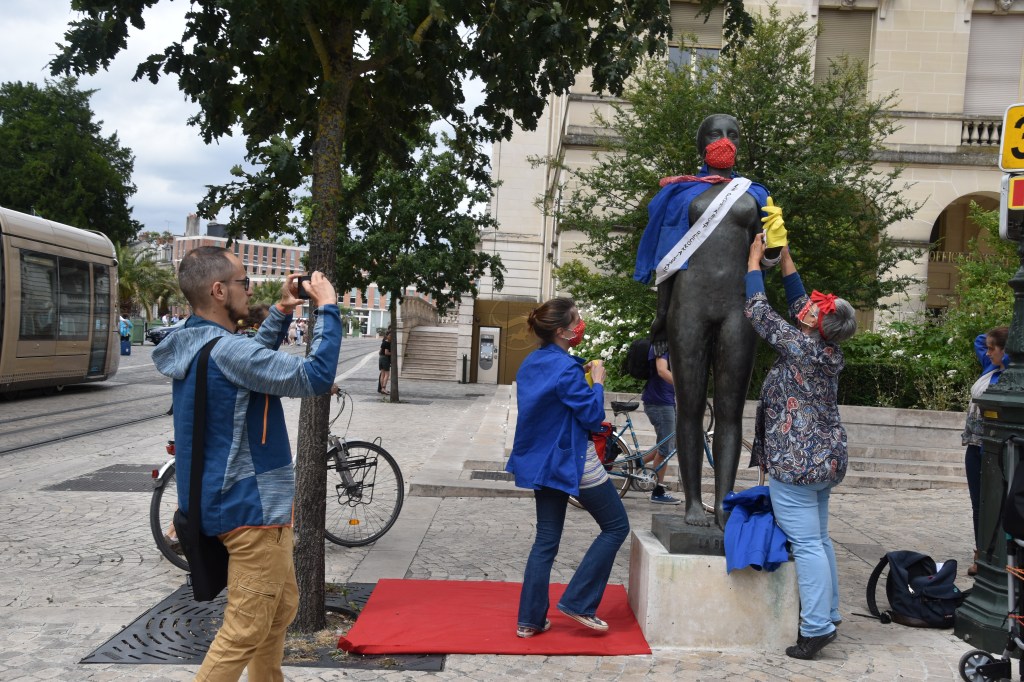 Inauguration de la statue « Première de corvée » par Les Rosies d’Offensive féministe 45. © Orléans AGENCE