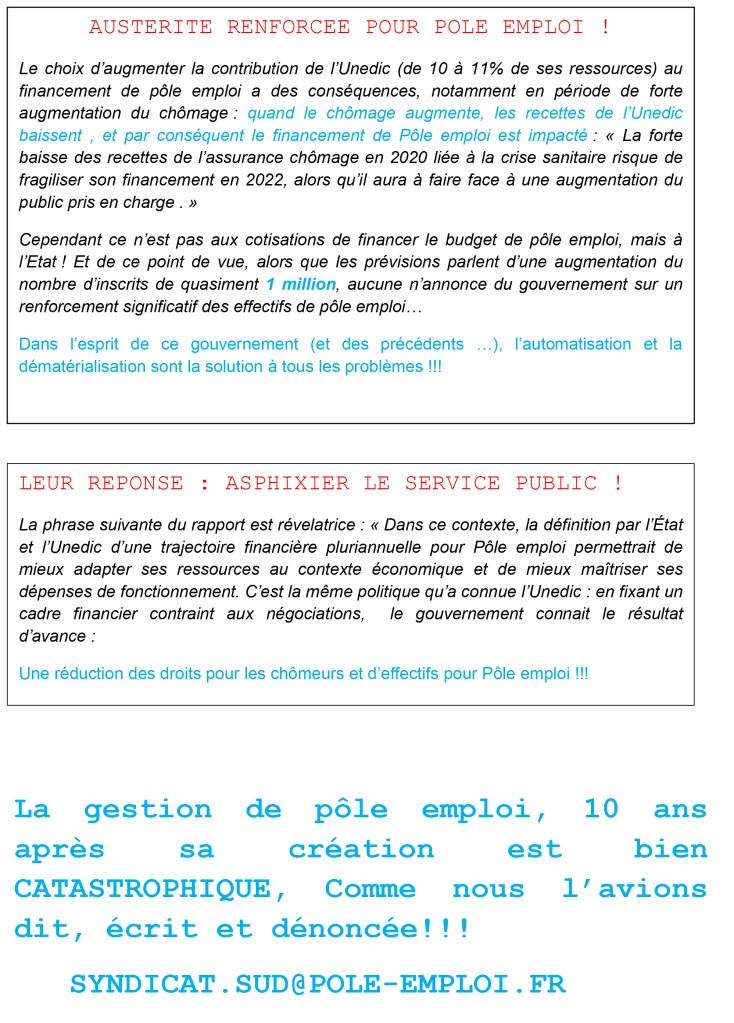 POLE EMPLOI : UN RAPPORT DE LA COUR DES COMPTES QUI PREPARE DES ATTAQUES !
