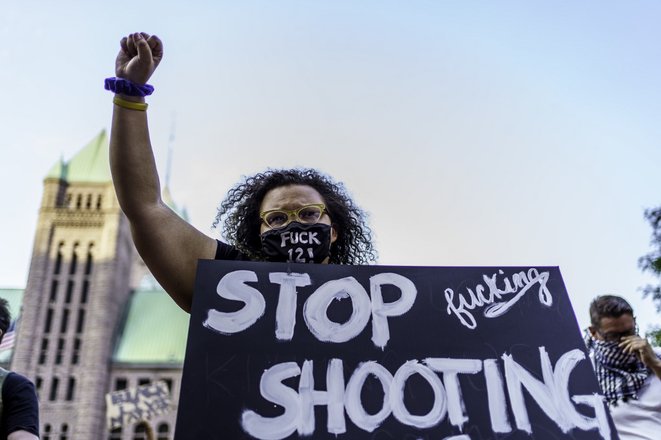 Une manifestante à Minneapolis le 24 août 2020. © Kerem Yucel/AFP