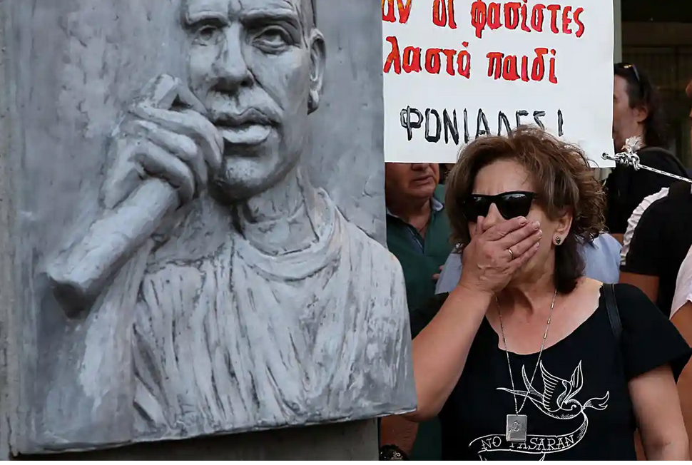 Or, les photos qui résument bien la signification du 7 octobre sont les vues étonnantes de la mer de personnes manifestant contre les nazis. Elles circulent sur Internet. Comme les photos de Magda Fyssas, enfin récompensée, enfin vengée, levant les poings devant le tribunal et criant «Pavlos, tu l’as fait! Tu as réussi, mon fils!».