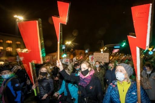 | © AFP Manifestation contre l’interdiction quasi totale de l’avortement, le 30 octobre 2020 à Varsovie, en Pologne |