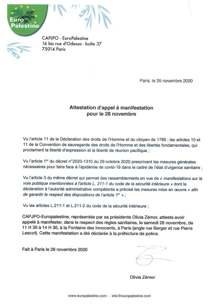 Cette manifestation a été déclarée à la préfecture de police, et vous trouverez ci-dessous le document que vous pouvez imprimer pour en attester.