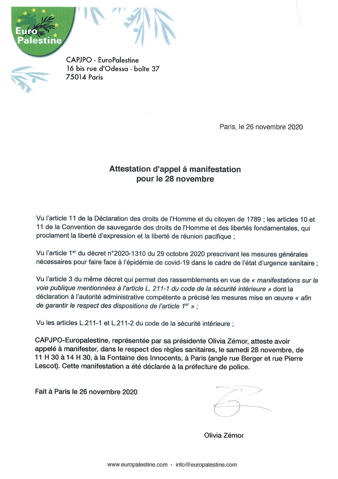 Cette manifestation a été déclarée à la préfecture de police, et vous trouverez ci-dessous le document que vous pouvez imprimer pour en attester.