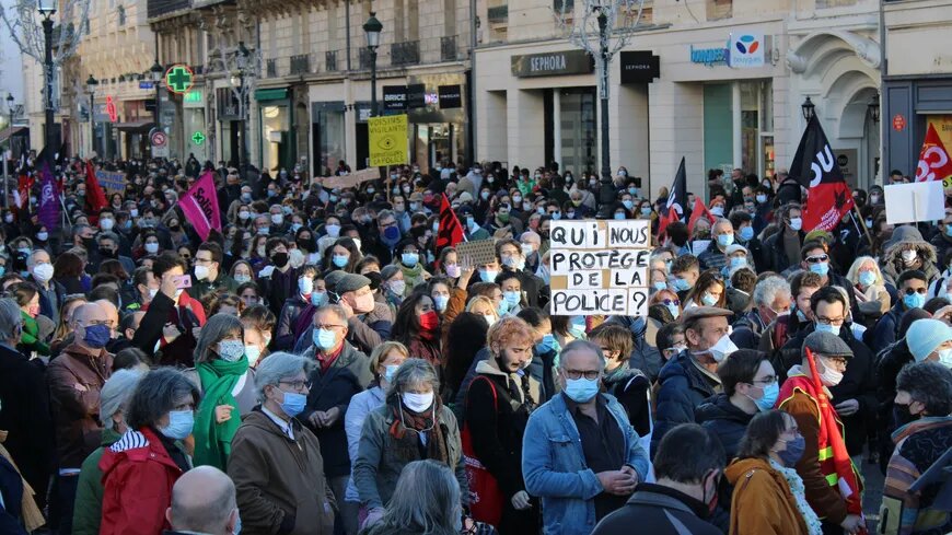 « Baissez vos armes, nous baisserons nos téléphones », « policiers floutés, justice aveuglée » ou encore « on est là même si Macron ne le veut pas » scande le cortège, qui est parti de la place De Gaulle vers 14h30. Il a ensuite pris la direction de la rue de la République avant de s’arrêter place d’Arc.