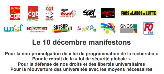 Signataires : SNTRS-CGT, CGT FERC SUP, CGT-INRAE, SNESUP-FSU, SNEP-FSU, SNASUB-FSU, SNCS-FSU, SNETAP-FSU, FO-ESR, SUD EDUCATION, SUD RECHERCHE EPST, SOLIDAIRES ETUDIANT-E-S, UNEF, L’ALTERNATIVE, FACS ET LABOS EN LUTTE