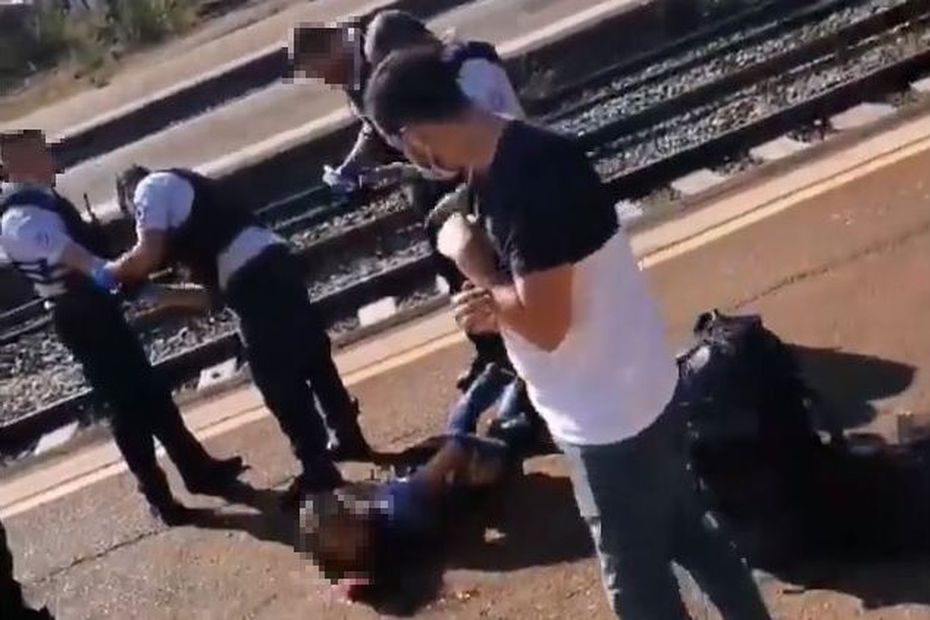 Sur des vidéos filmées et diffusées sur les réseaux sociaux, on pouvait voir l’homme plaqué au sol sur le quai par deux policiers, dont l’un avait sorti une arme. Le policier armé avait appuyé vigoureusement avec le pied, pendant plusieurs dizaines de secondes, sur la tête de l’homme, tenu au sol par l’autre fonctionnaire. Selon les vidéos, les deux policiers semblaient ensuite apporter les premiers soins à l’individu, qui a ensuite été hospitalisé et placé en garde à vue.