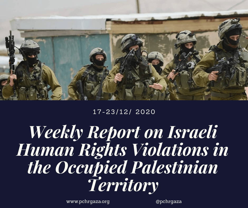 Rapport hebdomadaire sur les violations des droits de l’homme en Israël dans le territoire palestinien occupé 17 – 23 décembre 2020