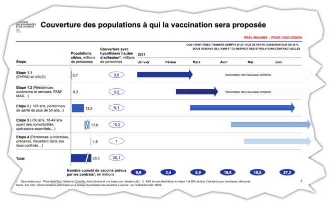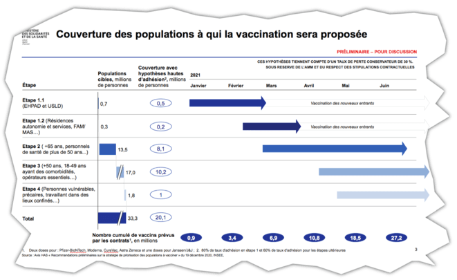 Plan initial de vaccination du gouvernement. © Document Mediapart