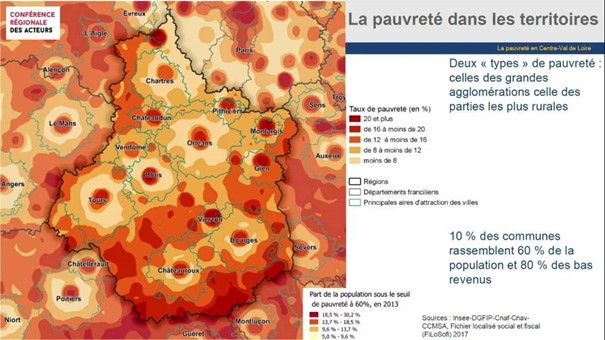 En Centre-Val de Loire, 10% des communes (dont les métropoles d’Orléans et Tours) rassemblent 60 % de la population et 80 % des bas revenus.