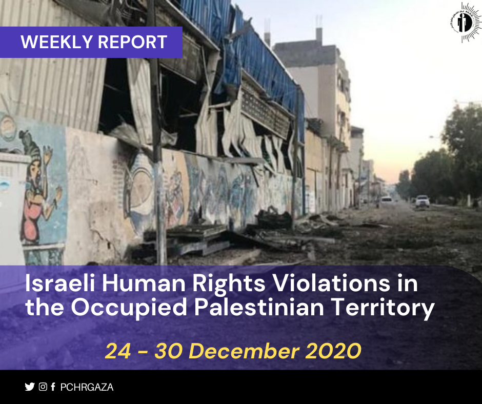 Rapport hebdomadaire sur les violations des droits de l’homme en Israël dans le territoire palestinien occupé 24 – 30 décembre 2020