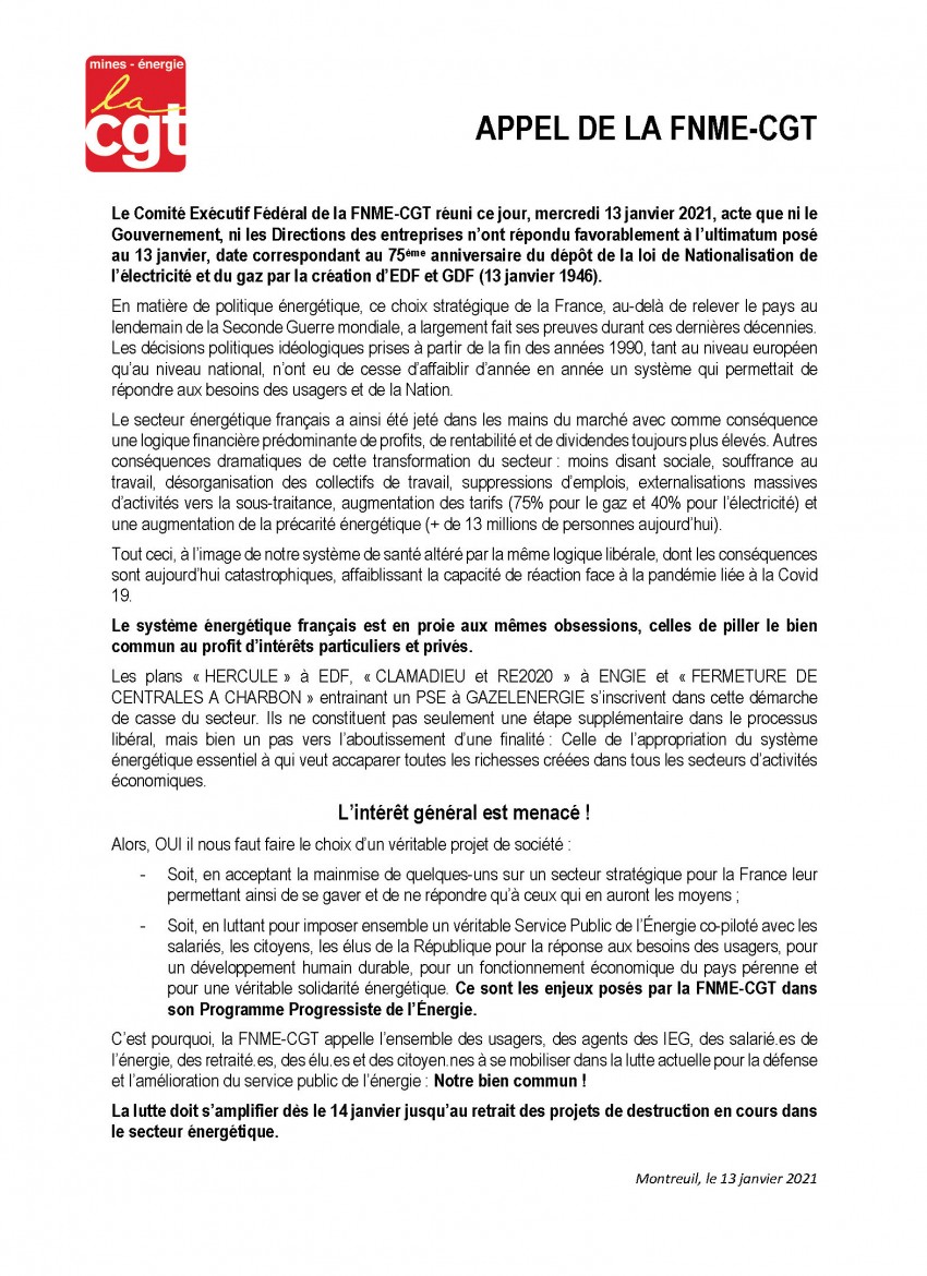 Pour défendre le service public de l’énergie, les organisations syndicales de cette entreprise appellent à une journée de grève et de mobilisation. Rassemblement ce 14 janvier à 11H sur le site de St Pryvé St Mesmin (Loiret) avec barbecue, prise de parole…