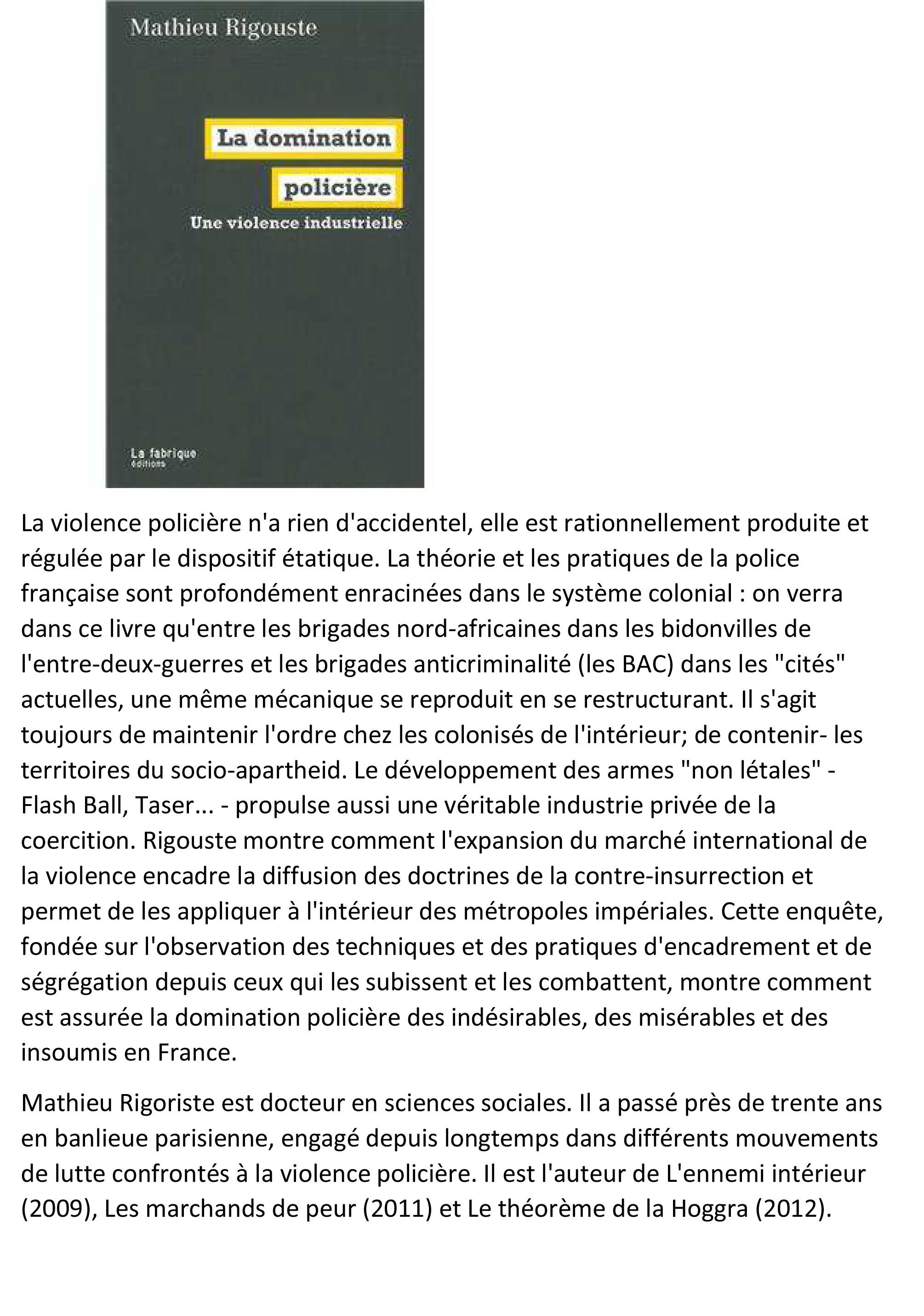 Enfin derrière tout ça il y a un système économique et un marché général du contrôle, de la surveillance et de la répression et par conséquent les quartiers populaires servent aussi de terrain d’expérimentation et de laboratoire pour ces industries-là qui à la fois y développent des nouvelles marchandises, les mettent à disposition de la police, qui en s’en servant créent de nouveaux marchés.