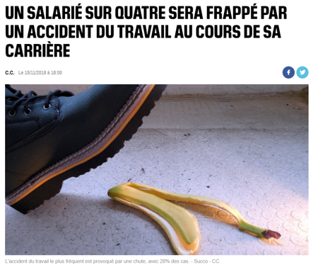 Vous êtes également attentif aux choix iconographiques des journalistes. En novembre 2018, pour illustrer un article sur les accidents du travail – et les cas de chute comme « scénario le plus fréquent » – BFM-TV sélectionnait une photo d’un pied sur le point de glisser sur une peau de banane. Que vous inspire ce choix et s’agit-il à vos yeux d’une « bavure » isolée ?