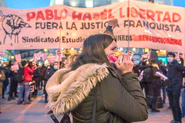 A Madrid des centaines de personnes se sont rassemblées sur la Puerta del Sol, fortement gardée par les forces de sécurité, derrière des banderoles qui clamaient « Assez de censure » et réclamaient la « Liberté » pour Pablo Hasél.