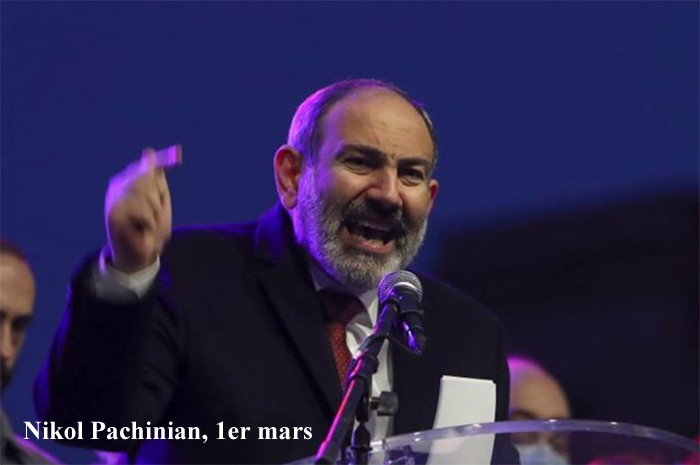 En Arménie, la crise politique est causée par la guerre du Karabakh et la défaite de 2020 [voir à ce sujet l’article de Vicken Cheterian publié sur ce site en date du 28 novembre 2020], qui a intensifié la lutte interne pour le pouvoir qui était en cours depuis au moins le changement de régime de 2018. Il s’agit d’une crise extraordinaire car les institutions politiques, même bien établies, ont des difficultés à faire face aux défis politiques qui émergent de la guerre, de la défaite militaire et des pertes territoriales. Pourtant, les institutions arméniennes ne sont manifestement pas assez développées pour faire face à cette tâche. L’actuel dirigeant Nikol Pachinian a eu trois mois pour traiter le problème de la crise interne et de la perte de légitimité de l’après-guerre. Il n’a cependant pas donné de réponse adéquate et a plutôt produit des politiques contradictoires: il a d’abord proposé des élections rapides, puis il a retiré cette proposition sans la remplacer par d’autres mesures visant à résoudre les tensions internes. Ses dernières mesures ont réussi à mettre en colère l’ensemble des haut gradés de l’armée, qui exigent aujourd’hui sa démission. [Nikol Pachinian a lancé, le lundi 1er mars, lors d’une mobilisation sympathisante: «Si l’opposition parlementaire est d’accord pour des élections anticipées, nous serons aussi d’accord». Réd.]
