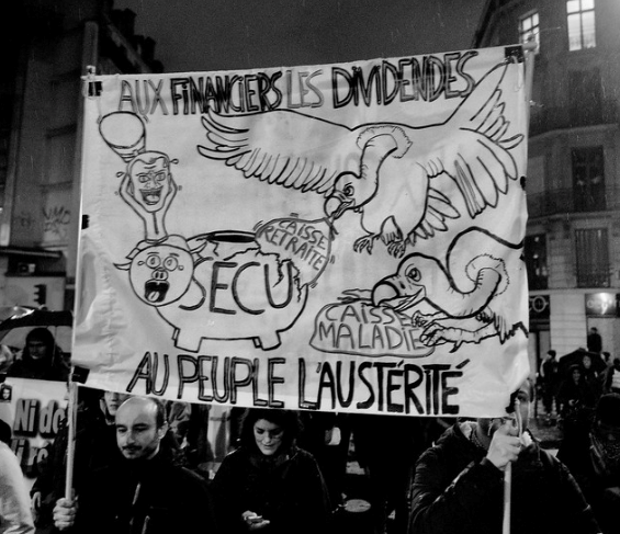 En préalable au passage de cette étape, le gouvernement a pu compter sur une meute servile d’éditocrates, « d’experts » et de journalistes moutonniers pour rabâcher cette idée que toutes les études démentes : les chômeurs le sont car ils ne veulent pas travailler. Cette théorie du chômage volontaire, inventée par les théoriciens libéraux dans les années 80, a inspiré la plupart des réformes de ces vingt dernières années. C’est ainsi que le « Revenu de Solidarité Active » a remplacé le « Revenu Minimum d’Insertion », pour valider ce proverbe bourgeois : « un bon pauvre est un pauvre qui se laisse exploiter, même pour des clopinettes ». On pourrait à la place s’interroger sur d’autres possibilités de lutte contre le chômage, comme la réduction du temps de travail (la dernière mesure de lutte contre le chômage ayant le mieux fonctionné étant le passage au 35h) ou la création de nouvelles activités comme la transition écologique ou le renforcement des services publics, mais noooon, cette équation libérale que rien ne vérifie est devenu le dogme consensuel de notre époque.