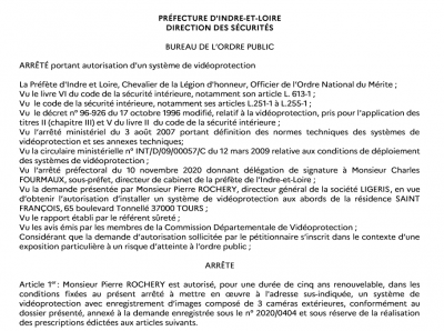 En décembre 2020, Pierre Rochery, directeur général de la société Ligeris, réclame auprès de la préfecture l’autorisation d’installer un système de vidéosurveillance aux abords de la résidence Saint-François, située au 65 boulevard Tonnellé. Sans suprise, la préfecture autorise l’implantation de trois caméras extérieures.