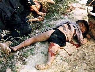 Le 16 mars 1968, les GI étatsuniens entraient dans le village vietnamien de My Lai, suspectant que des Vietnamiens du FLN s’y étaient réfugiés. Un lieutenant-colonel a alors ordonné à ses troupes de brûler les maisons, tuer le bétail, détruire les denrées alimentaires, boucher les puits.