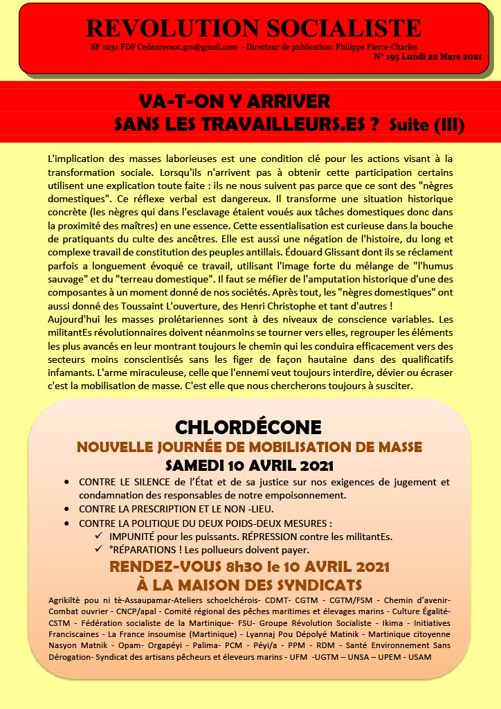 Une nouvelle grande mobilisation est prévue le 10 avril en Martinique pour dénoncer un possible non lieu. Entre 5 et 15 000 Martiniquais ont déjà défilé dans les rues de Fort-de-France le 27 mars pour dénoncer la possible prescription de cette plainte. Plus de 90% de la population adulte en Guadeloupe et Martinique est contaminée par le chlordécone, selon Santé publique France, et les populations antillaises présentent un taux d’incidence du cancer de la prostate parmi les plus élevés au monde.