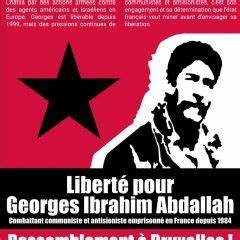 Temps est désormais venu d’assigner l’Etat français ! Non seulement, l’exigence de la libération de Georges Abdallah va continuer à être portée partout et par tous, au sein de toutes les luttes, dans tous les cortèges et rassemblements, sur tous les murs, dans tous nos quartiers, nos facs, en banderoles, en affiches, en tracts, par courriers, mails, diffusions mais désormais appel est aussi lancé, en parallèle des démarches entreprises par l’avocat de Georges Abdallah, pour que soit rappelé à chaque instant et à chaque déplacement de représentants de l’Etat français et notamment du Ministre de l’Intérieur actuel cet impératif du « il faut qu’il signe ! ».