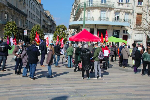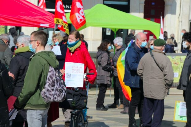 Sur la place du Martroi, ils étaient plusieurs dizaines de militants à distribuer leur mini-journal, intitulé « Pour un monde plus sûr ». Parmi les revendications écrites : l’arrêt et l’abrogation des lois liberticides, le maintien des emplois et l’interdiction des licenciements, la réduction du temps de travail à 32 heures par semaine sans perte de salaire, un exercice du pouvoir par les citoyens, un système de santé publique et de protection sociale de haute qualité, le maintien et le développement des services publics, etc.