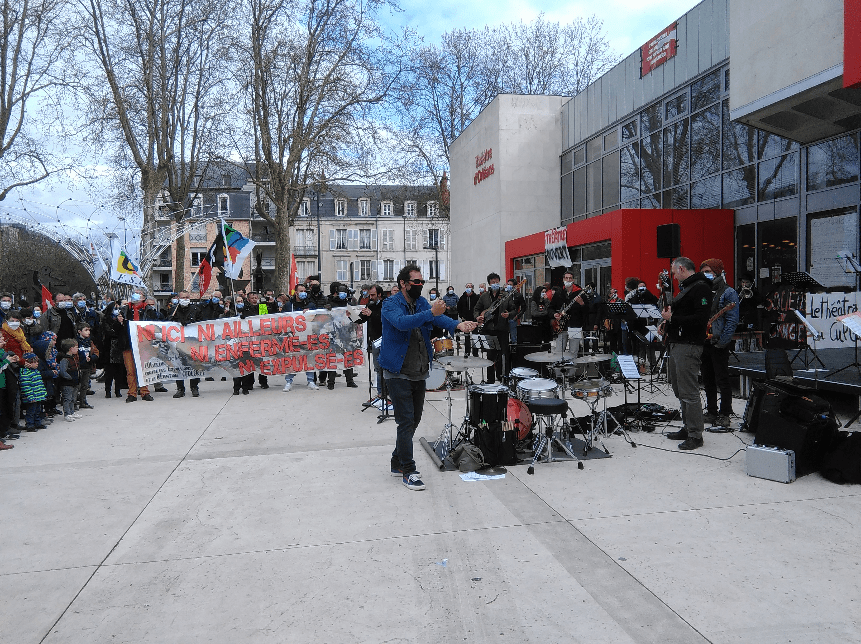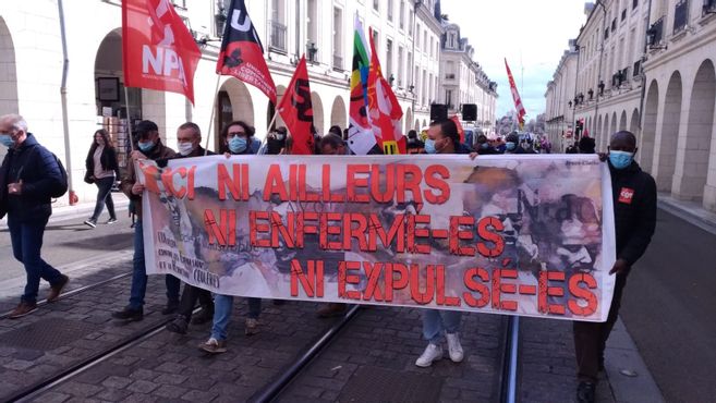 Les manifestantEs dénoncent la création d’un centre de rétention administrative à Olivet, qui doit ouvrir en 2023, et plus généralement le sort réservé aux demandeurs d’asile par les autorités françaises.
