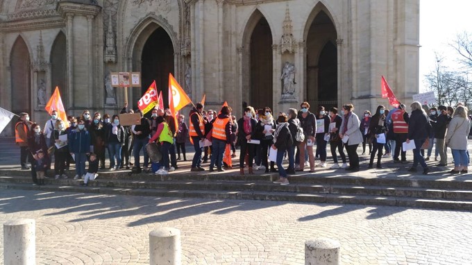 « C’est rare que le secteur petite enfance fasse grève. Mais, là c’est un ras-le-bol général… » Malgré les sourires et la joie de se retrouver pour une cause commune, les manifestants, une soixantaine environ, sur le parvis de la cathédrale à Orléans, tiennent à dénoncer la réforme Taquet. Des ordonnances et des décrets qui devraient arriver d’ici l’été contre lesquels ces professionnels de la petite enfance entendent bien lutter. Pour le bien-être des enfants. « Le personnel est usé : à cause de la dégradation de nos conditions de travail et du taux d’encadrement », lance Fabienne Jacob, représentante déléguée CGT du service petite enfance sur Orléans.