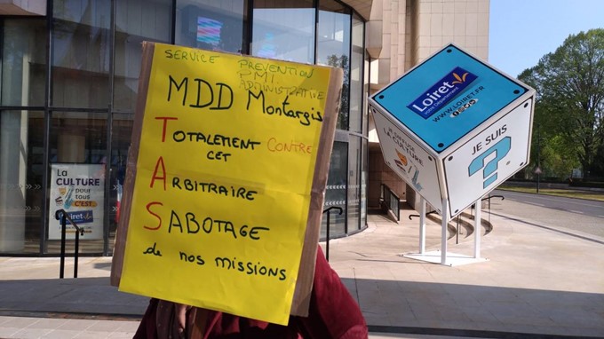 Une vingtaine de travailleurs sociaux et agents administratifs, qui protestent contre le « projet de transformation de l’action sociale », qui doit affecter les six Maisons du Département du Loiret (en charge de l’enfance, du RSA, de la protection maternelle et infantile, des allocations personnalisées d’autonomie…).