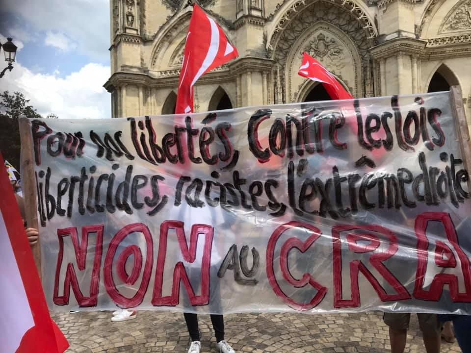 Nombreux slogans contre le Rassemblement National , le pouvoir et ses politiques sécuritaires, contre les CRA ni ici ni ailleurs et en défense des immigréEs