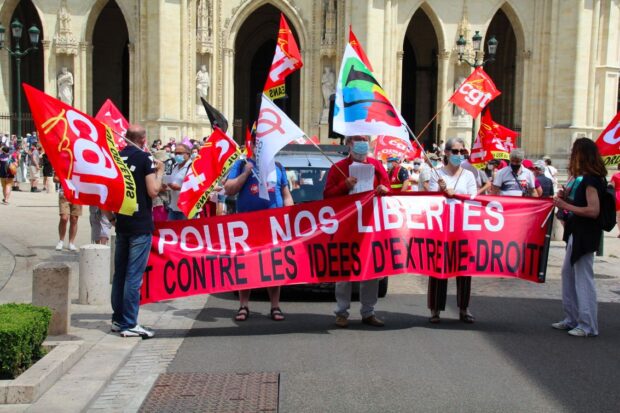 Dans les rues du centre-ville, les manifestants ont marché en scandant « Les idées d’extrême droite, ça ne se discute pas, ça se combat » ou « Vivre ensemble et nous enrichir de nos différences ».