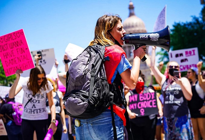 Plus de 1 000 manifestants ont défilé du Capitole de l’État du Texas à Austin au manoir du gouverneur le 29 mai pour protester contre le « Texas Heartbeat Act » récemment adopté qui interdirait la plupart des avortements dans l’État après six semaines de grossesse.