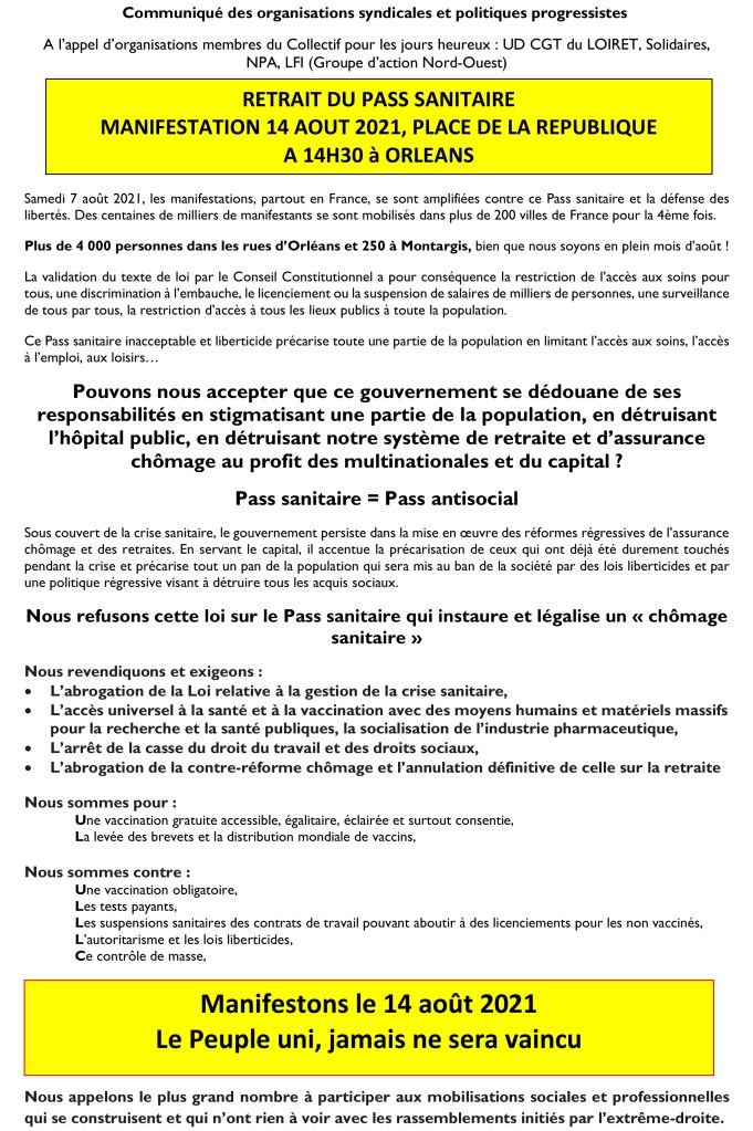 Enfin, à l’heure où l’hôpital manque cruellement de personnels et que la quatrième vague se développe, imagine-t-on que les soignantEs qui refuseront de se soumettre à l’obligation vaccinale seront interdits autoritairement d’exercer leur métier ?